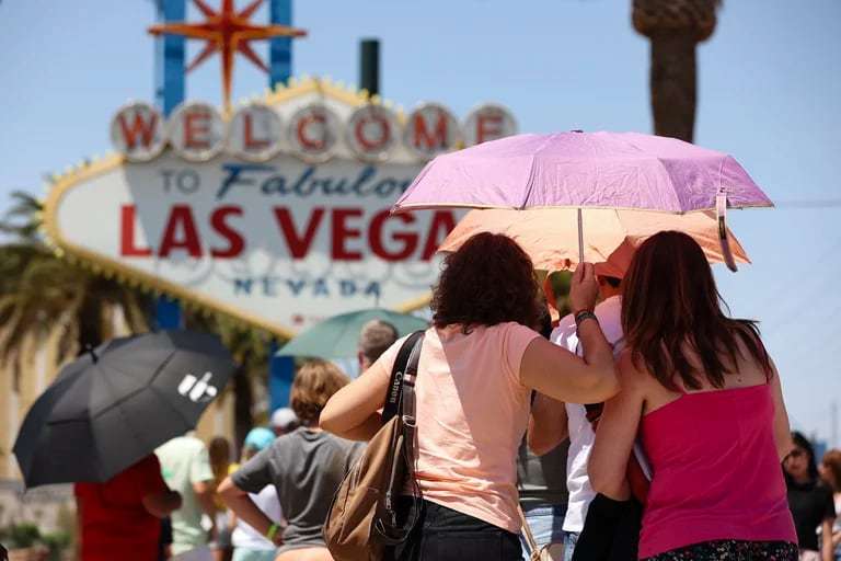 - Las Vegas alcanzó los 40.6 grados o más por 50ª vez este año el 29 de julio, su fecha más temprana registrada. La fecha más temprana anterior fue el 11 de agosto. La ciudad ha alcanzado al menos 43.3 grados en 29 días este año, empatando el récord de 1940. También experimentó su periodo de 31 días más caluroso registrado, con una temperatura máxima promedio de 44.4 grados desde finales de junio hasta finales de julio.