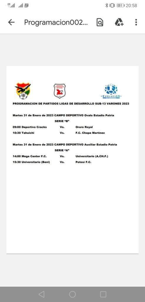 La Liga de Desarrollo Sub -13 Varones se desarrolla en Chuquisaca desde el 30 de enero al 5 de febrero, con una importante participación de clubes del país divididos en series y tuvieron un excelente debut esta jornada