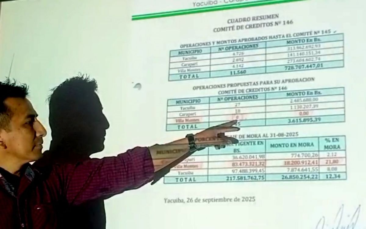 “Debido a eso se suspendieron los créditos en Villa Montes, por el alto porcentaje de mora”, afirmó. También cuestionó la falta de personal capacitado. “No tienen el mínimo conocimiento del manejo bancario ni experiencia en el sistema financiero. Les han dado la responsabilidad de manejar el Fondo Rotatorio sin estar preparados”, denunció.